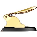 Office 2-hole punch in 23k gold plated finish with black lacquered base.